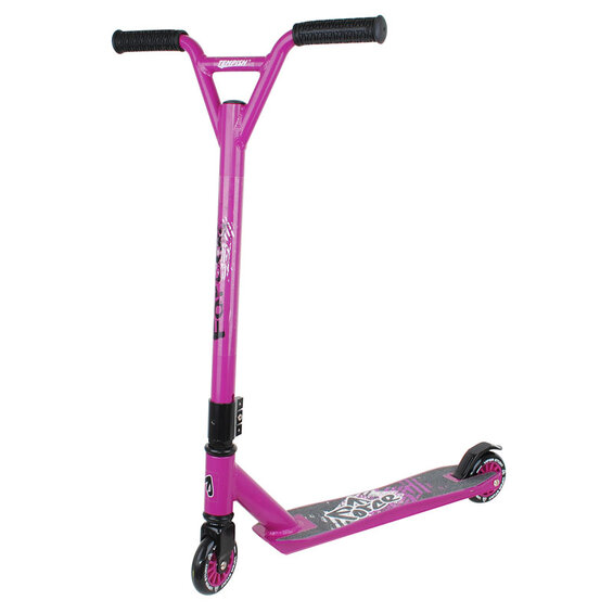 Kvalitná kolobežka určená k freestylové jazde. Kolieska Hi-rebound 85A. Matierál: zliatina AL. Ložiská: ABEC 5 chrome. Nosnosť: 80 kg. Max. výška riadítok: 80 cm. Dĺžka nášľapnej plochy: 32 cm. Hlavové zloženie so závitom. Stupeň únosnosti športového zaťaženia 3.