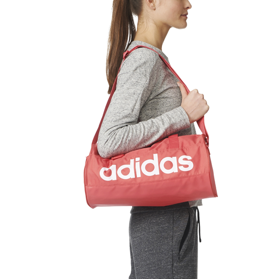 Dámska športová taška značky Adidas vyrobená z kvalitného a pevného ripstopu. Taška má vo vnútri praktickú priečku na rozdelenie vecí, z vonkajšej strany dve postranné vrecká, kam je možné oddeliť potrebné topánky. Nechýba ani nastaviteľný popruh cez rameno a krátke úchyty na cvok pre nosenie v ruke. Taška je ideálne na tréning alebo cestovanie. Rozmery tašky sú 20 cm x 40 cm x 20 cm.